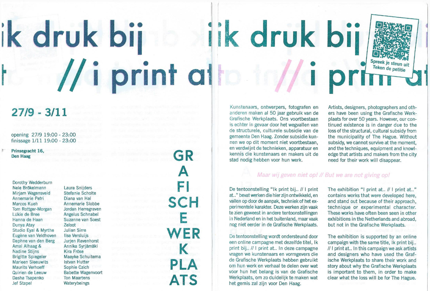 27.09-03.11 | Ik druk bij / I print at, group exhibition at Grafische Werkplaats Den Haag (NL)