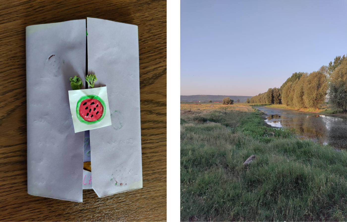 images taken in Bechet, left: a Watermelon loveletter; right: the swampy Jiet river during a 6am morning exploration